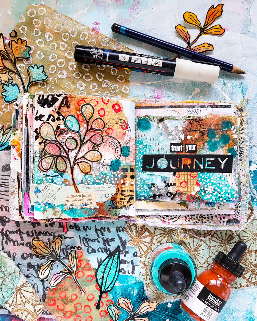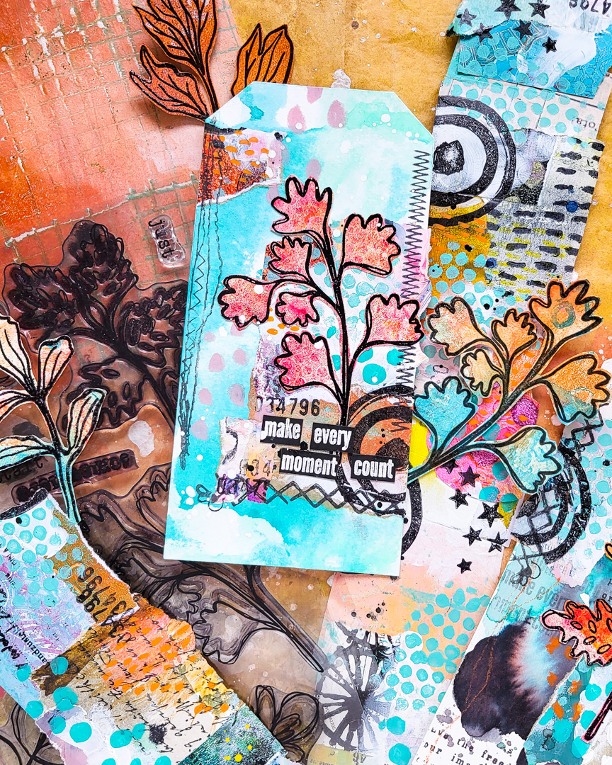 Hi there, Susanne here sharing a new video tutorial! I had a messy play with inks, collage and different mark making tools in my handmade junk art journal. I am using a focal image from our Collage Leaves 3 stamp set.