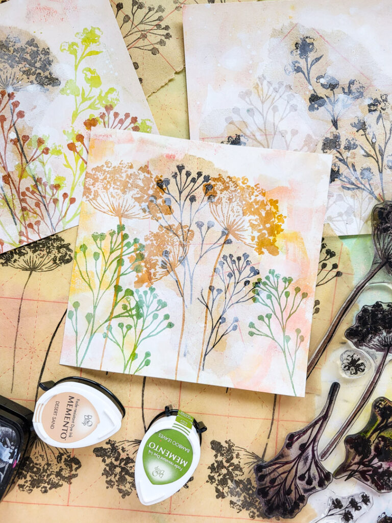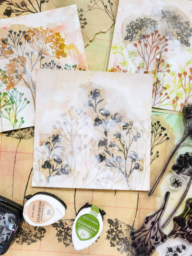 Hi there, Susanne here with a fun tutorial on how to create layered mixed media backgrounds with a Vintage flair using our new Weed Love 2025 stamp set together with gel prints & collage fodder.