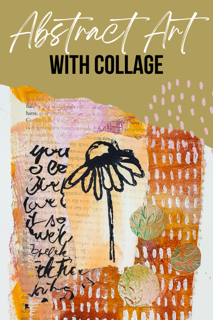 Hi there, Susanne here with an abstract mixed media art piece using some of my handmade collage papers combined with a flower stamp from Pencil Marks 6. I started this spread by adhering some of my handmade collage papers warm orange and brown shades.