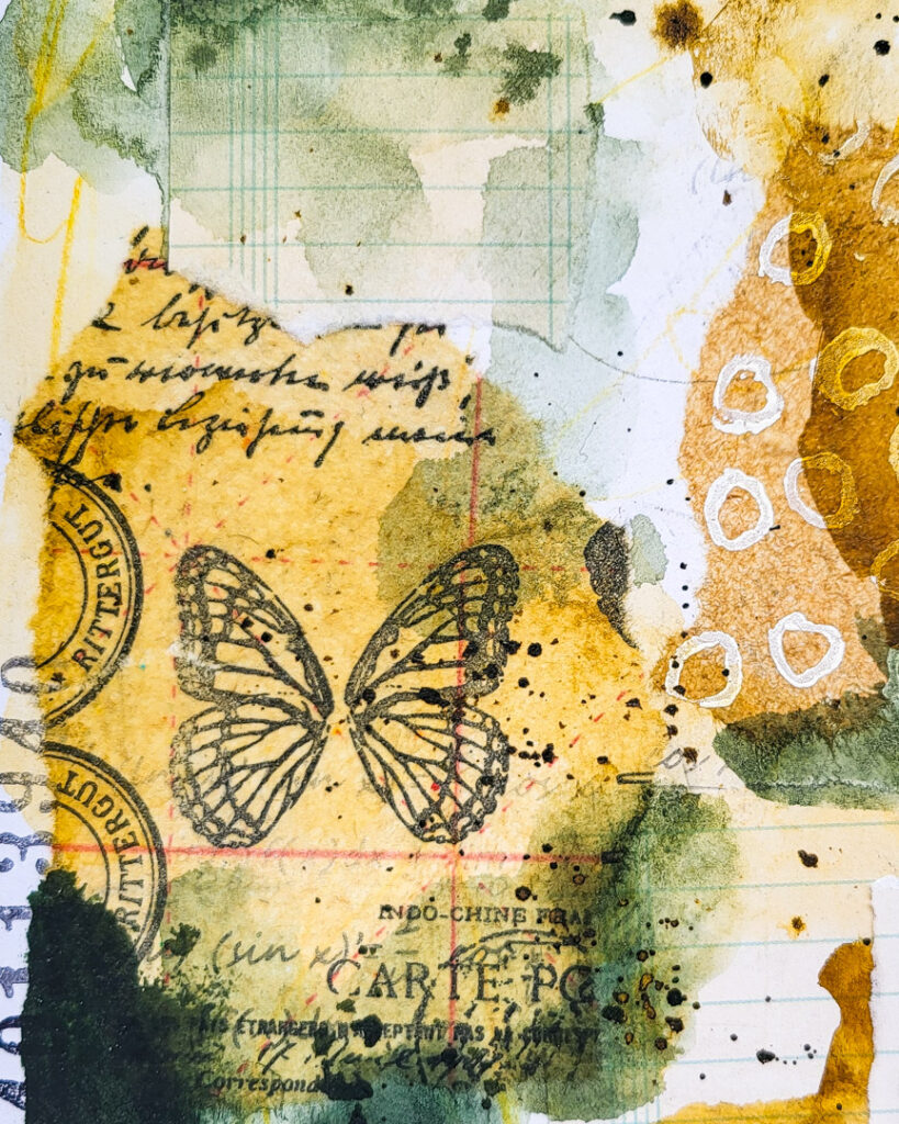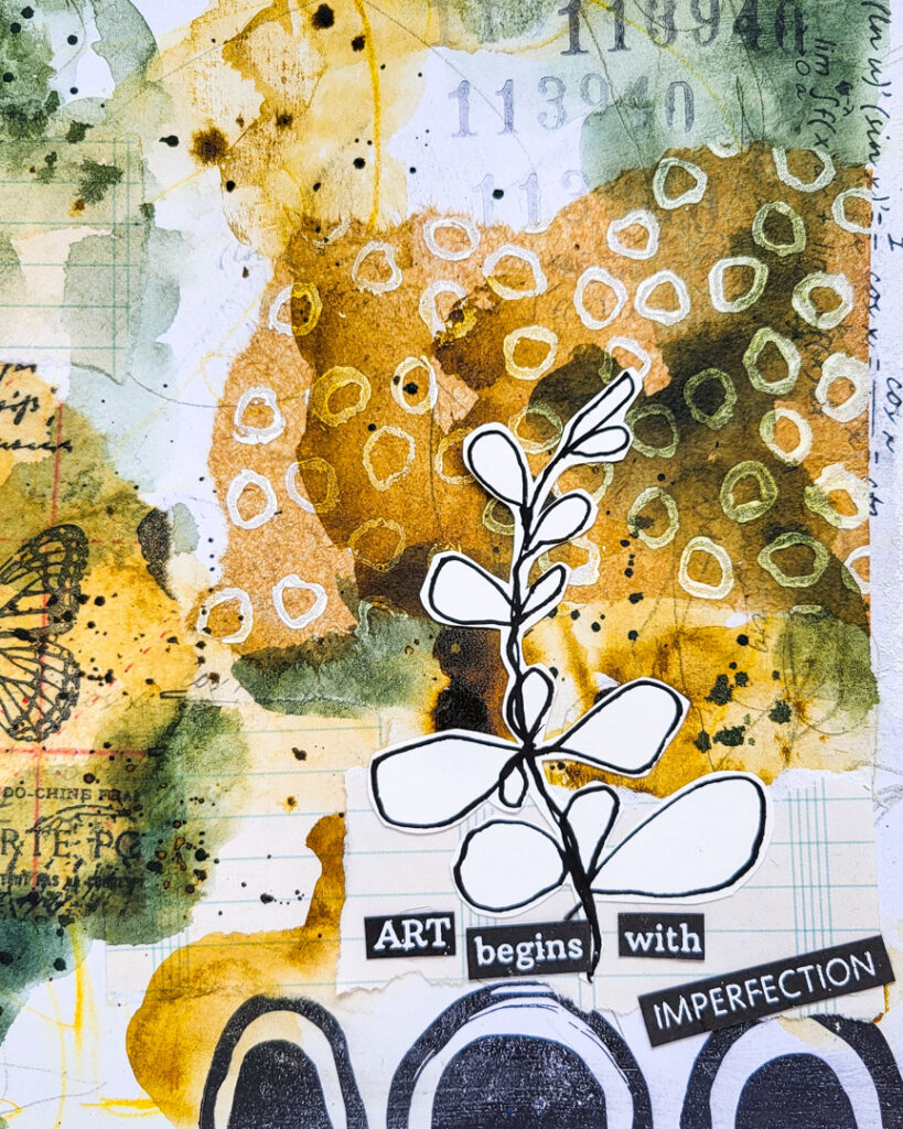 Hi everybody! Today I am sharing an art journaling tutorial. I am creating an intuitive abstract painting with collage, stamps, mark making and inks. I am playing with stamps from Mix It Up 6 and Mix It Up 4.