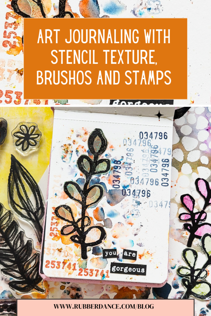 Hi there, Susanne here sharing a quick and easy art journal page using our Organic 4 stencil with Brushos and an image from Pencil Marks 8. Scroll down for a process video.