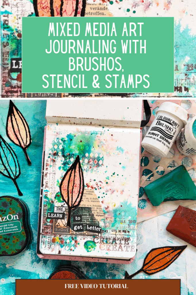 Hi there, Susanne here sharing an art journaling page using Brusho Pigment powders combined with our Dotted stencil, some background stamping and collage fodder with our Pencil Marks 8 stamp set. Scroll down for a quick process video!
