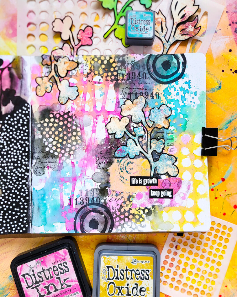 Distress Ink Art Journaling with our NEW STENCILS & STAMPS