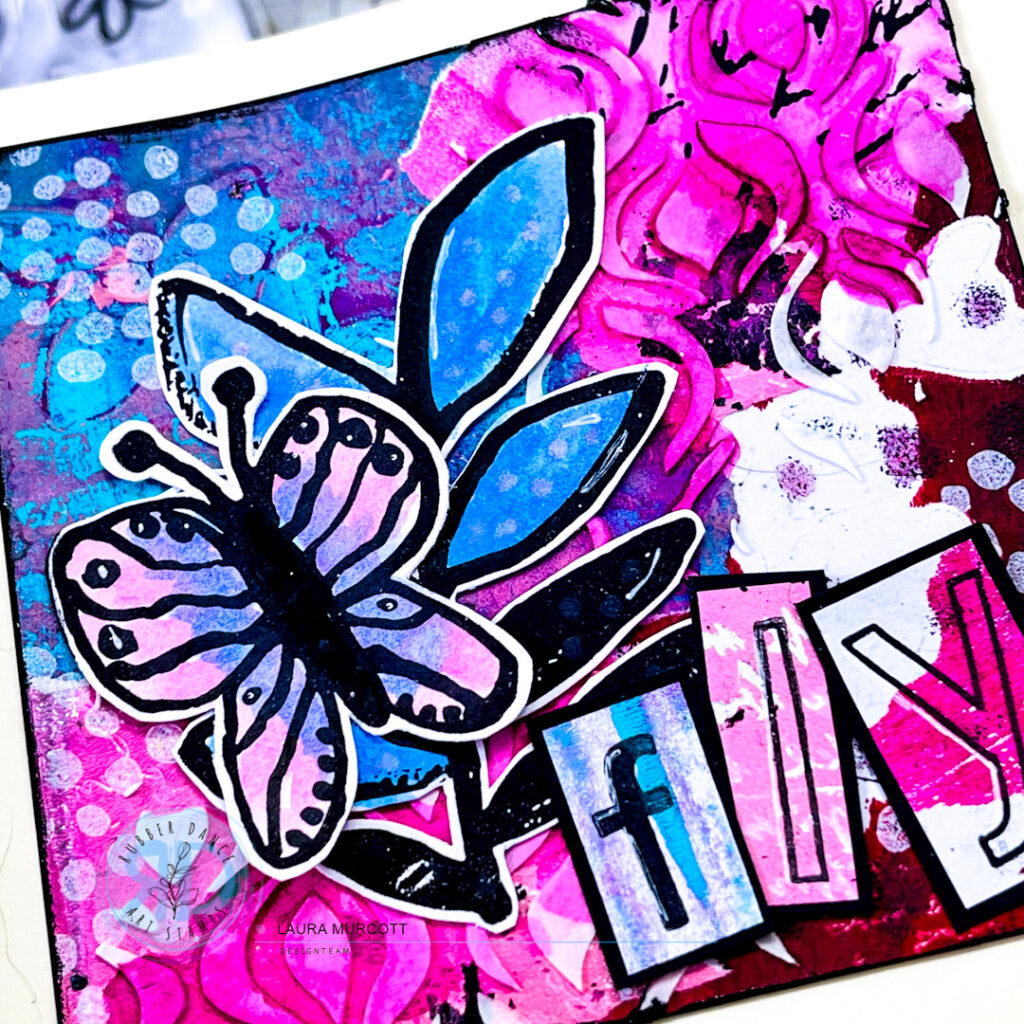 For my sentiment, or word, I used the A to Z stamp set. I stamped the letters onto scraps of gel prints, added a black mat layer so they had a bold border and trimmed them out and glued them down. I have a full process reel on my Instagram page and YouTube channel which you can find linked below!