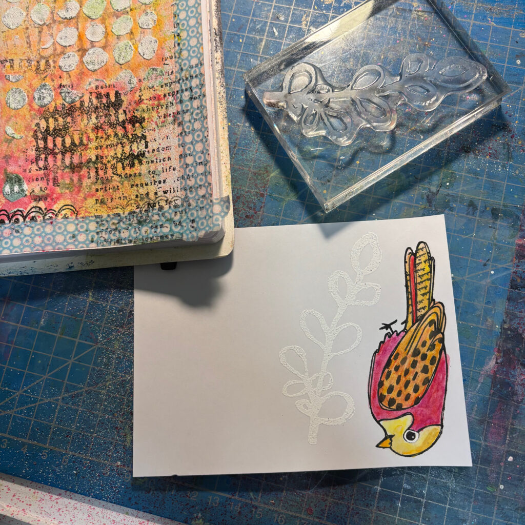 Mixed Media Art journal Page with Textured Birds 2