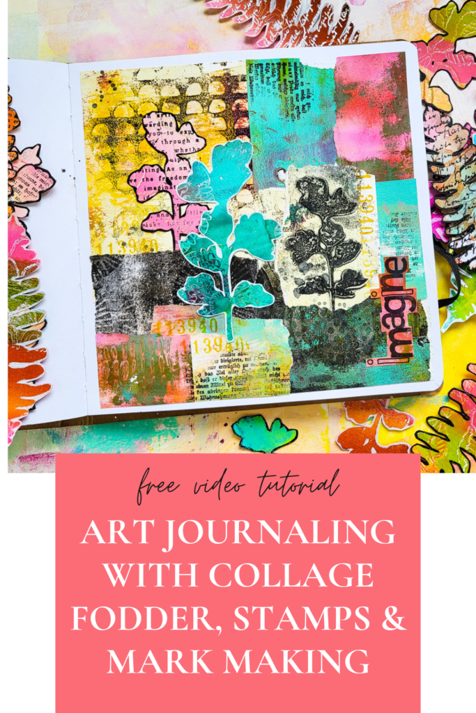 Hi there, Susanne here sharing an art journal collage with gelli prints and botanical elements made with our Sketchy Leaves 5 stencil. I also use stamps from our Mix It Up 5 and Mix It Up 6 stamp set. Scroll down for a full process video.