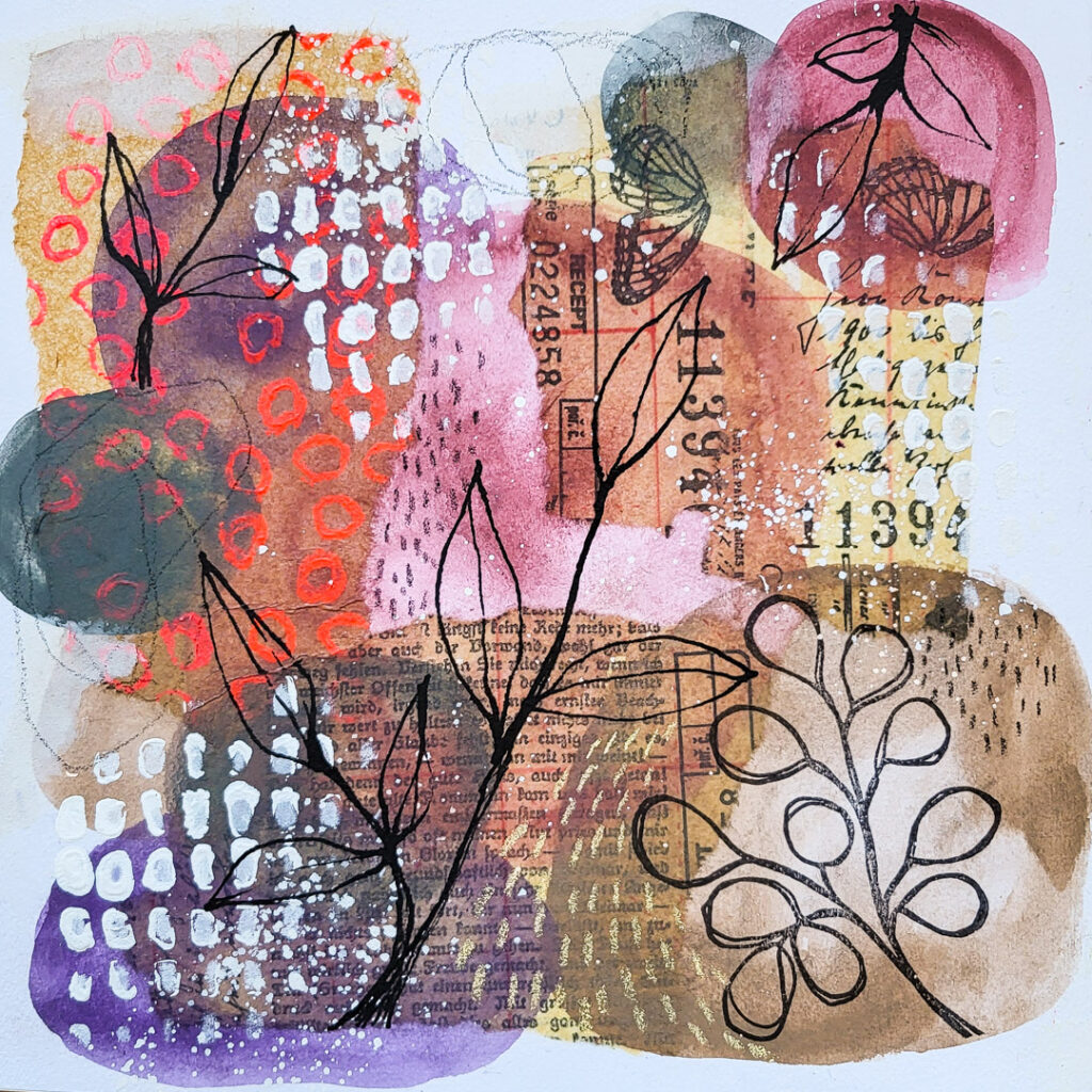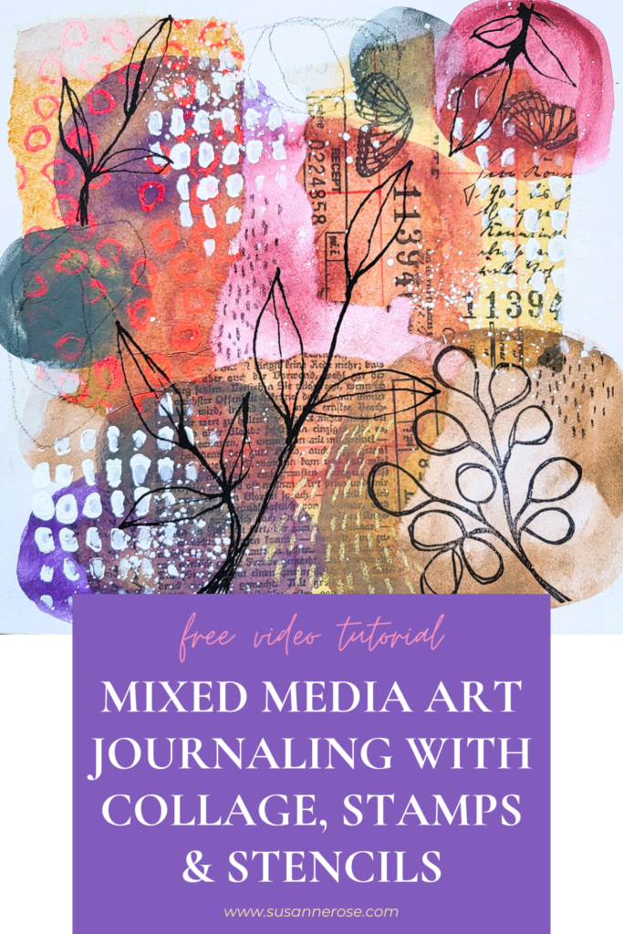 Hi there, Susanne here sharing a mixed media art journal page with a variety of different mediums, mark makings and a stamp from our Collage Leaves 2 set. Scroll down for a full process video.