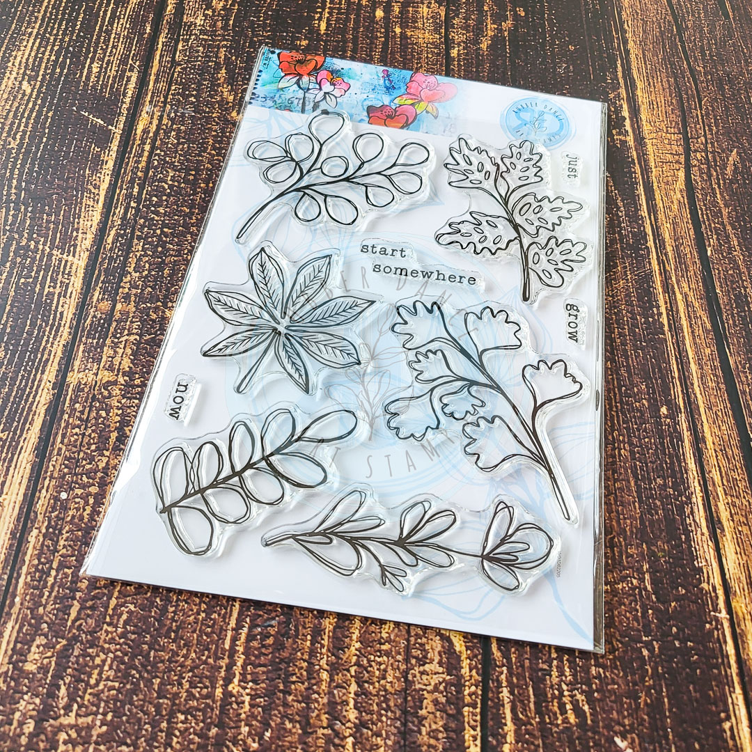 Hi there, Susanne here sharing a mixed media art journal page with a variety of different mediums, mark makings and a stamp from our Collage Leaves 2 set. Scroll down for a full process video.