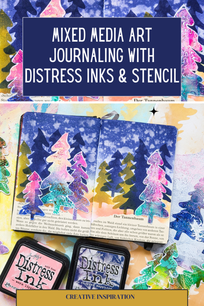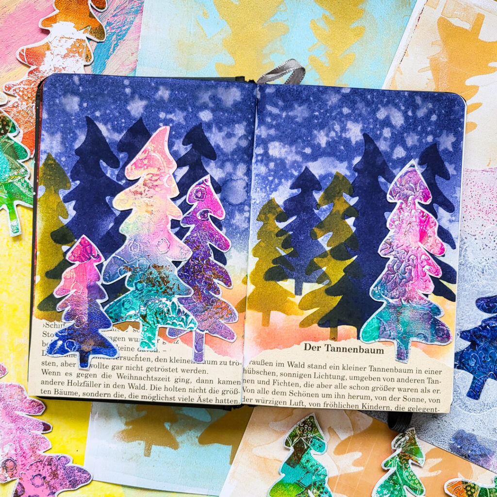 Hi there, Susanne here with an atmospheric art journal page using Distress Inks together with our brand new XMas Trees stencil. All our new products are 10% off until Sunday, October the 20th.