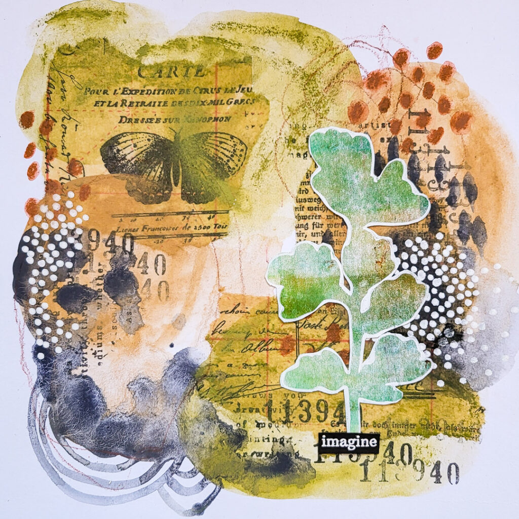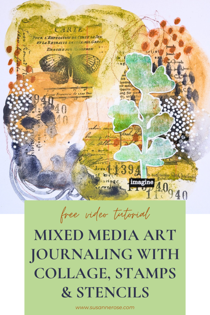 Hi there, Susanne here sharing a mixed media art journal page with a variety of different mediums, mark makings and a focal image made with our Sketchy Leaves 5 stencil. Scroll down for a full process video.