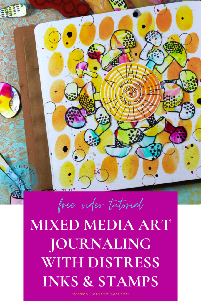 Art Journal Page with Distress Oxide Inks & Textured Mushrooms 2