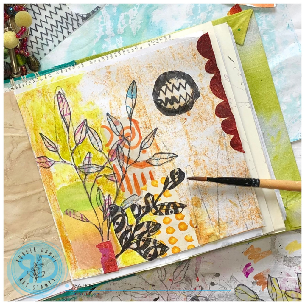 Hey, it’s Isa here and today I’m excited to show you how to bring your art journal page to the next level by double stamping on tracing paper! On today’s spread I am woking with stamps from Pencil Marks 3 and Sketchy Leaves.