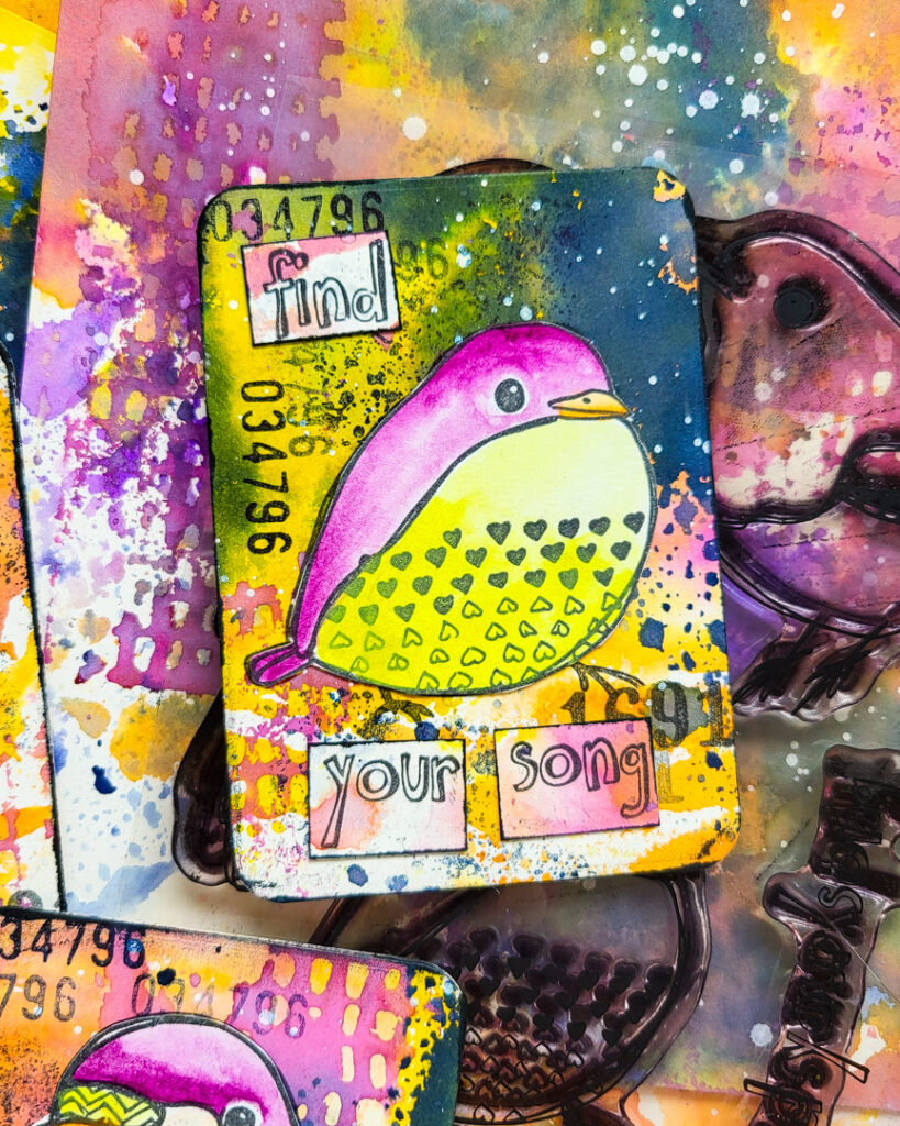 Mixed Media ATCs with Distress Ink Background & Textured Birds