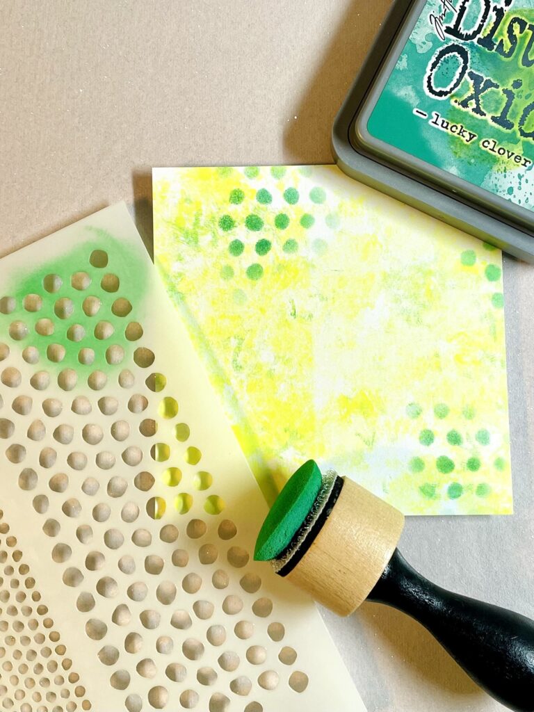 First up the Mini Ink Dots stencil, followed by a foliage stamp from the Mix It Up 3 stamp set.