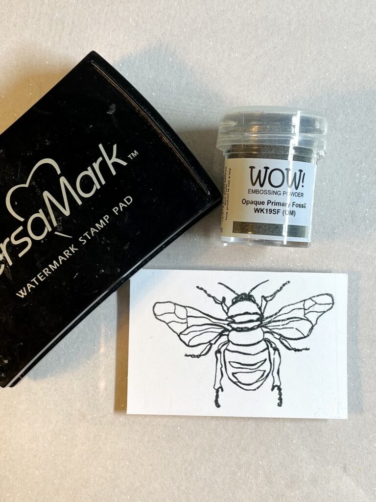Finally a couple of collage items to layer onto my page – a little heart and the lovely Inky Friends bumble bee.