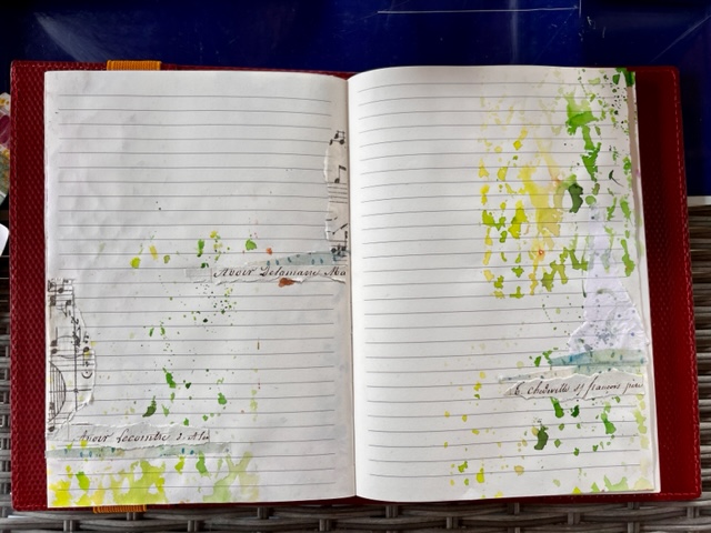 I created some areas on the pages that would ground the flowers, using scraps of ephemera and washi tape.