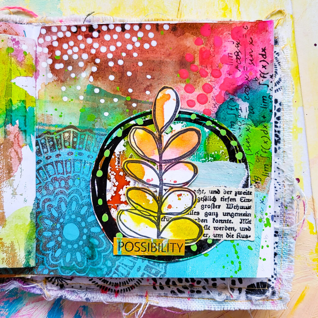 Hi there, Susanne here with a new art journal page in my handmade junk art journal using a collage fodder embellishment I made a while ago with an image from our Collage Leaves 2 stamp set. You will find the video tutorials linked up in the post.