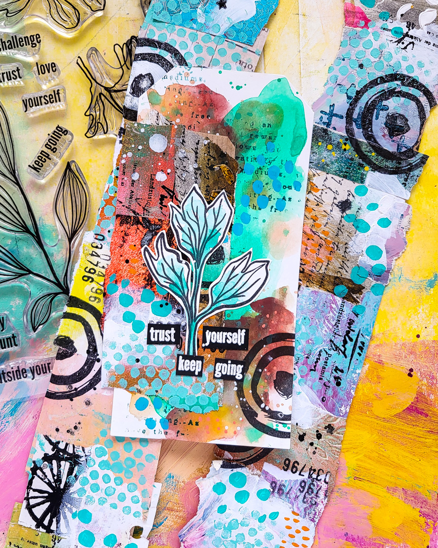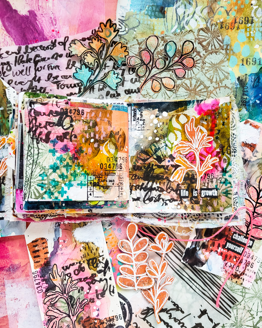 Hi there, Susanne here sharing a new video tutorial! I had a messy play with inks, collage and different mark making tools in my handmade junk art journal. I am using a focal image from our Collage Leaves 3 stamp set.