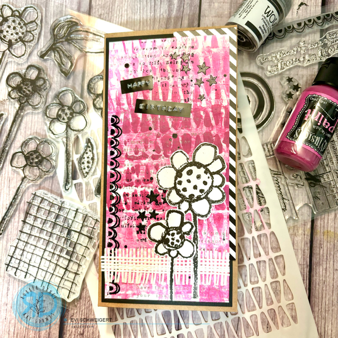Hey there, its Evi on the Blog today with a tutorial for a mixed media card with a gelliplate background with XMas Trees stencil and Textured XMas Trees 2 stamps.