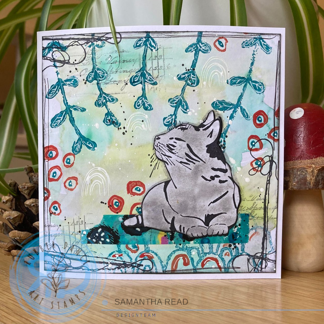 Hello, Samantha here today and I’m sharing a page from a new, small art journal. I used three stamp sets, Sketchy Birds 2, Collage Leaves and Pencil Marks 1. My journal page measures just 4 inches by 4 inches. I’ve found that using smaller pages makes you look at the stamps in quite a different way, I ordinarily would have used whole images of the birds but couldn’t for this size page and I quite like the effect.