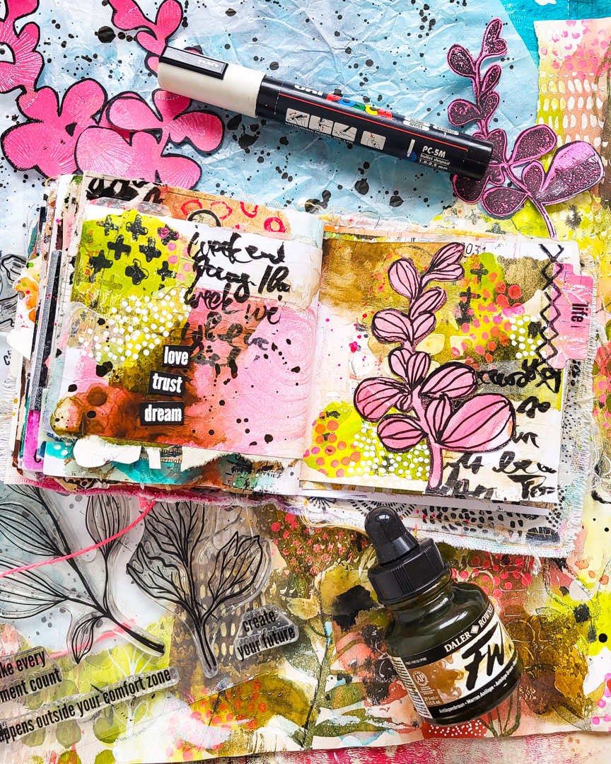 Art Journal Tutorial with Sketchy Leaves 5 and Distress Ink Background