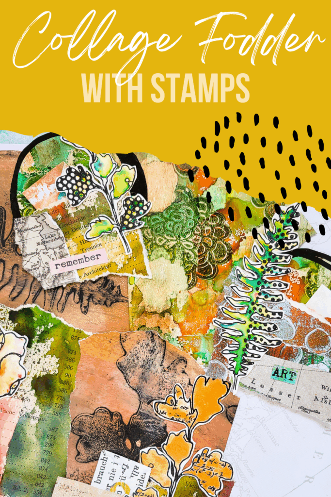 Only paper scraps and “ready-to-go” stamped images are allowed! The pieces I am making will be perfect for future projects like art journal pages, tags, greeting cards or journal decoration.
