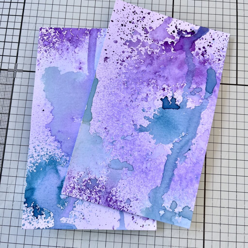 On watercolor paper, I play with different spray inks to create a colorful layer and use a blow dryer to speed up the process.