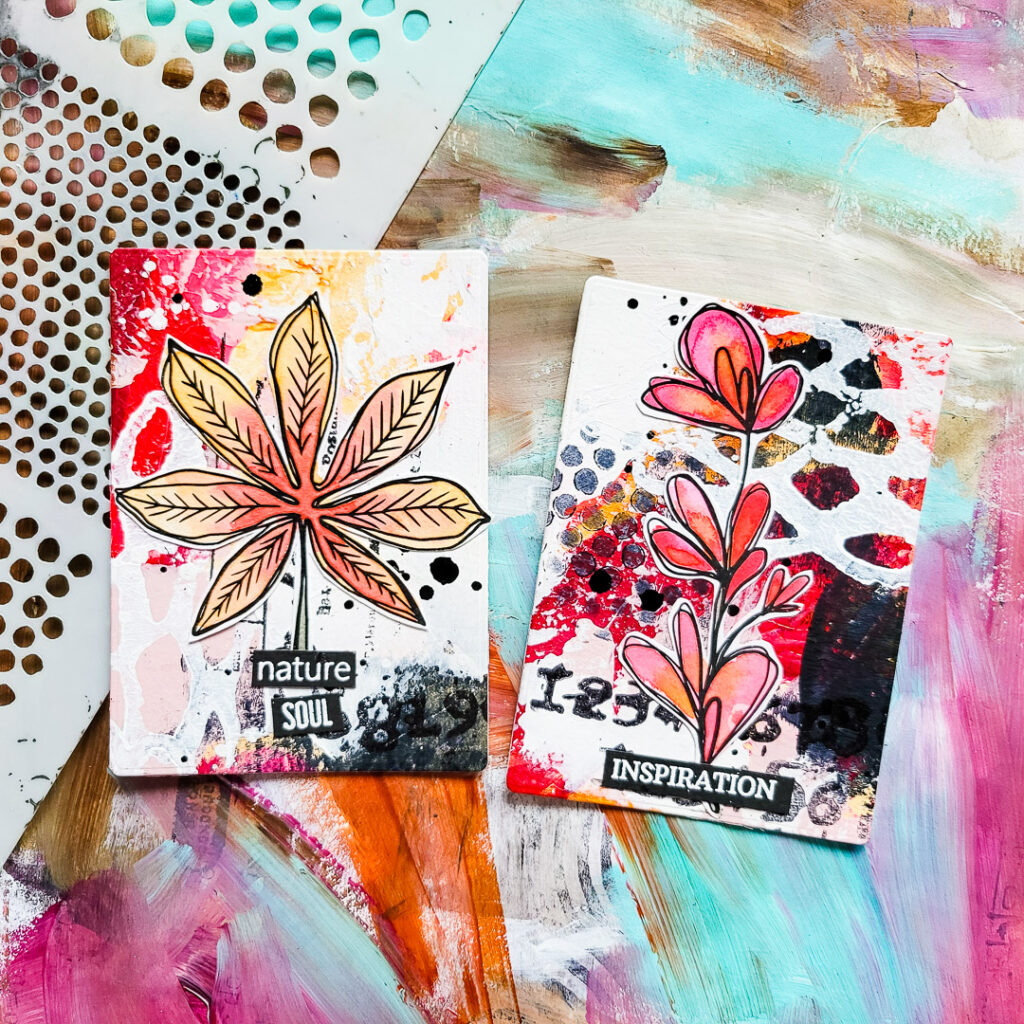 ATCs with Mixed Media Background & Collage Leaves Stamps