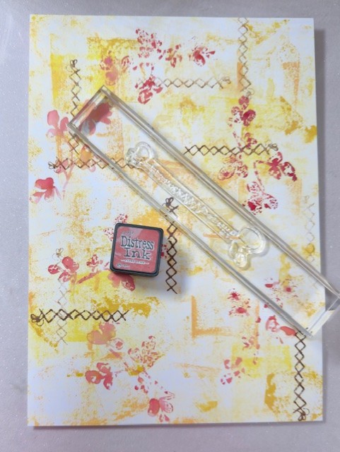 I wanted a play with the new Sketchy Leaves 7 and Mini Textures 1 stencils and Stitching Borders stamp set but had no particular project in mind. So I decided to use them all and create a master board 😊