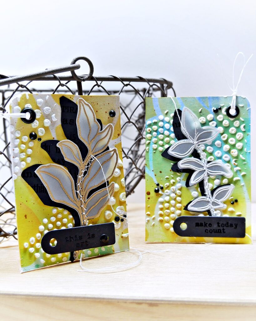 Hej & Hello everyone, it’s Dunja here and I’m happy to be back on the blog today sharing a pair of mixed media Artist Trading Cards with you using some of our fabulous stamps and stencils. I hope you’ve had a fabulous start to the year, wishing you all the best and lots of creativity.