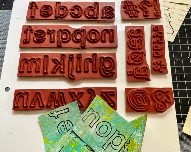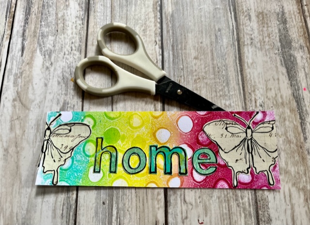 I also stamped the letters for my word on a scrap of gelli print. The ink was quite wet so I embossed it with clear powder.