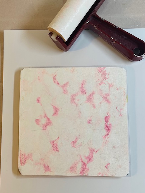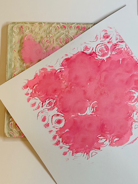I like to brayer a thin layer of white acrylic paint on my Gelli plate first – but it’s personal preference.