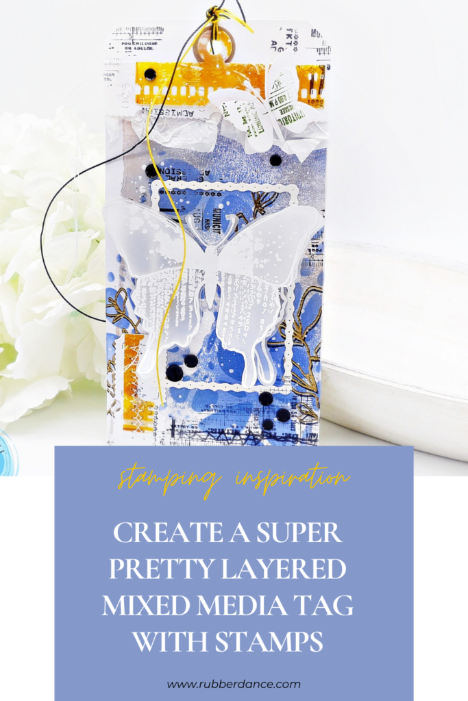 Hej there Rubber Dance’rs, it’s me, Dunja, today on the blog sharing a TAG with the fabolous Grungy Butterflies 2022, embossed on Vellum and some Gelprint Papers from my stash. I am building up dimension by adding different bits and pieces of cut or torn papers and some die cuts.