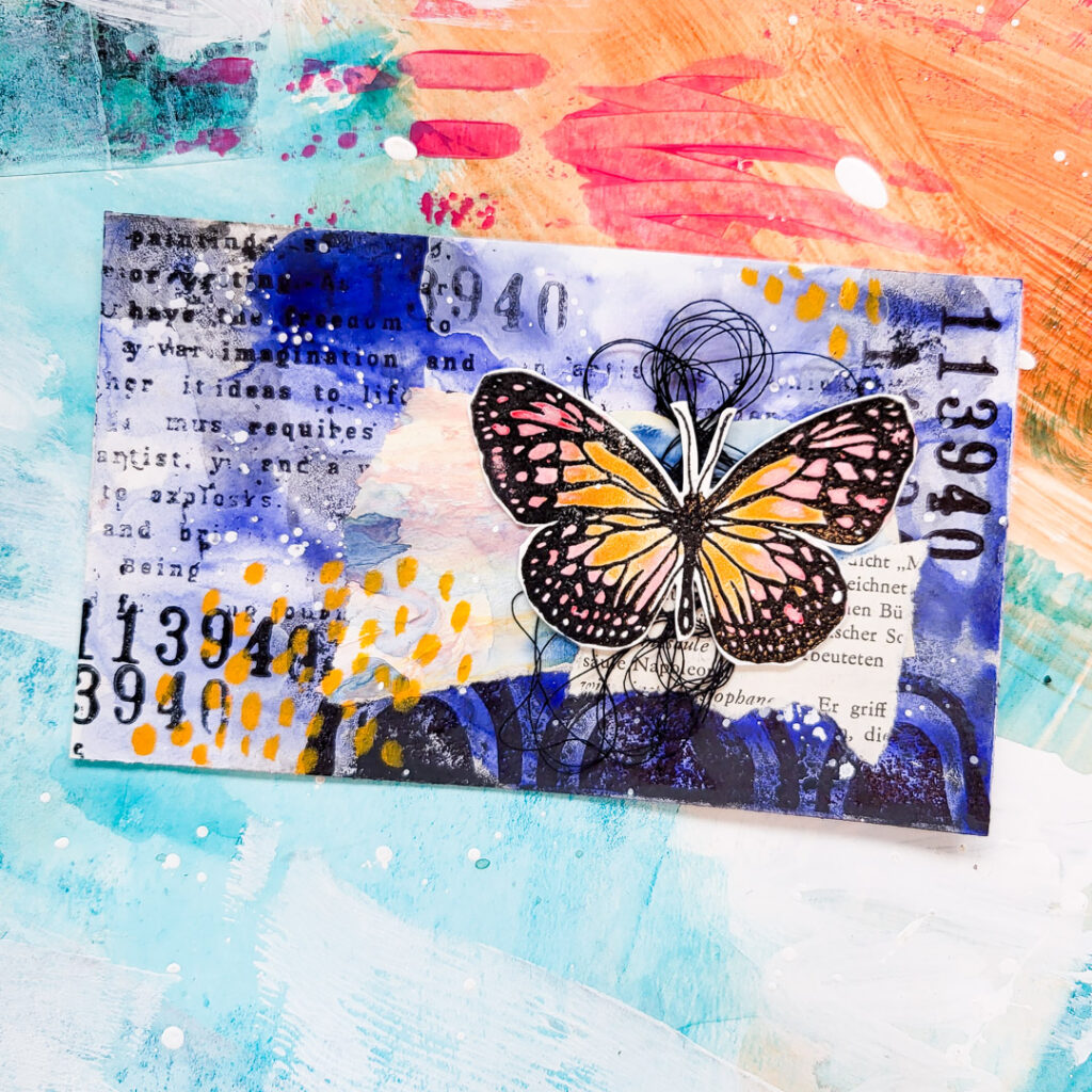 Hi there, Susanne here sharing a mixed media index card with soft pastels and stamps from our Butterflies and Moths and Mix It Up 4 stamp sets.