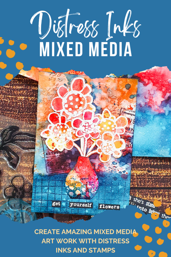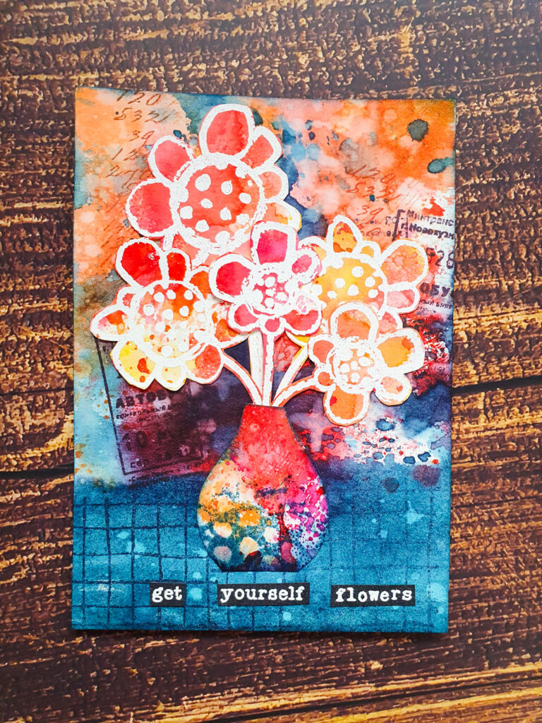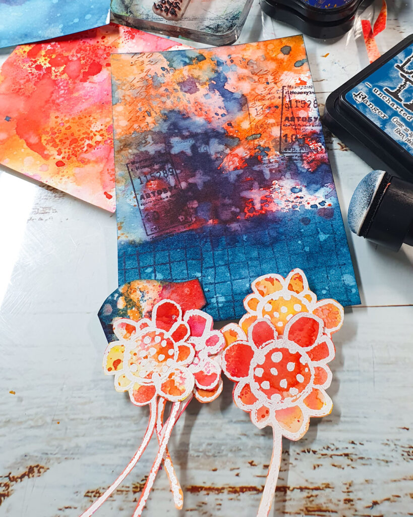 Hi there, Susanne here! I’m sharing some mixed media index cards today using a Distress Ink background combinded with flowers from our Pencil Marks 4 stamp set. I love putting flowers into vases. I didn’t want the flowers to have a straight stem, I wanted it to be bend to the sides for some images. Scroll down for a quick process video on how I managed to do this.