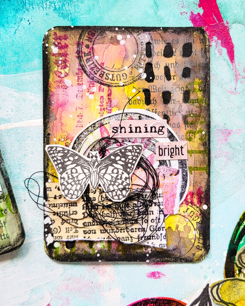 The focal images are made in another video. I used some gelli scraps together with images from our Butterflies and Moths stamp set. The video is linked at the end of the post.