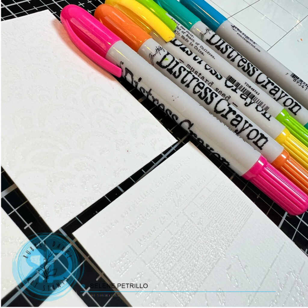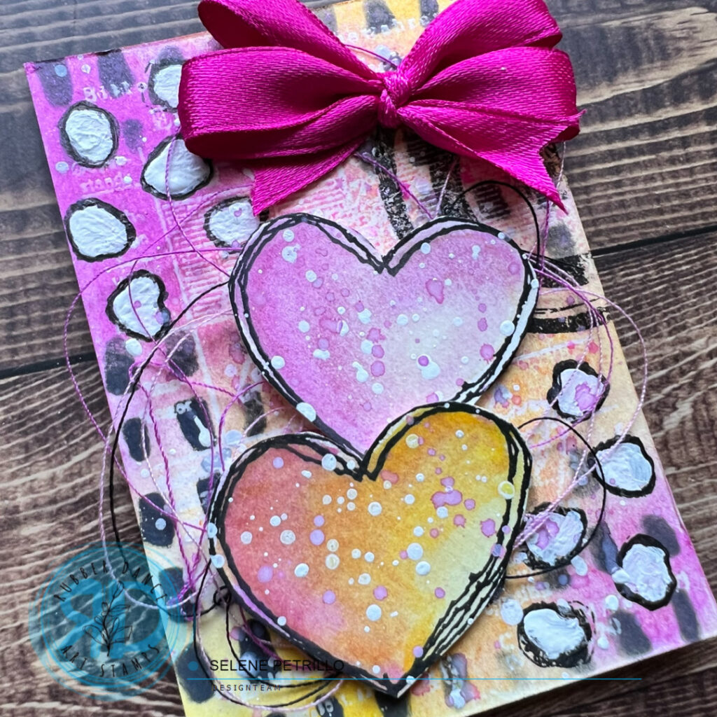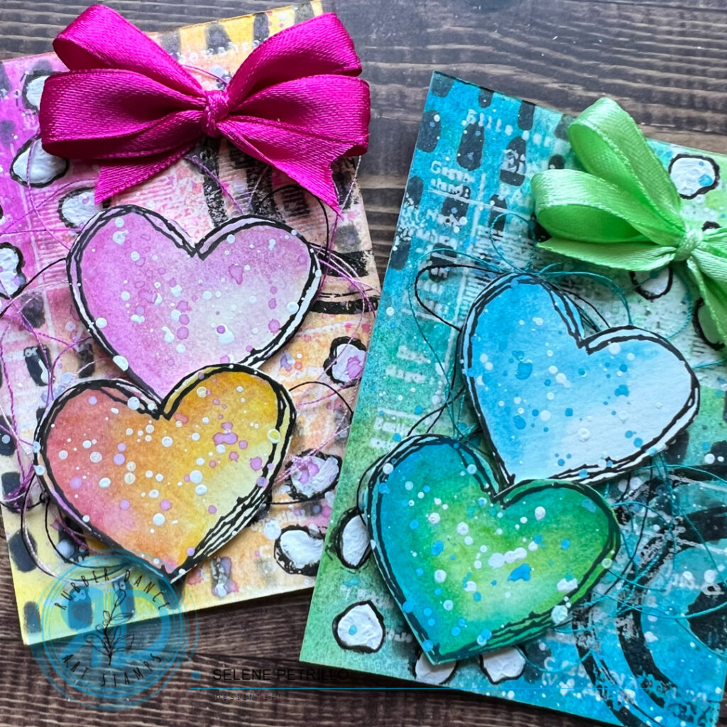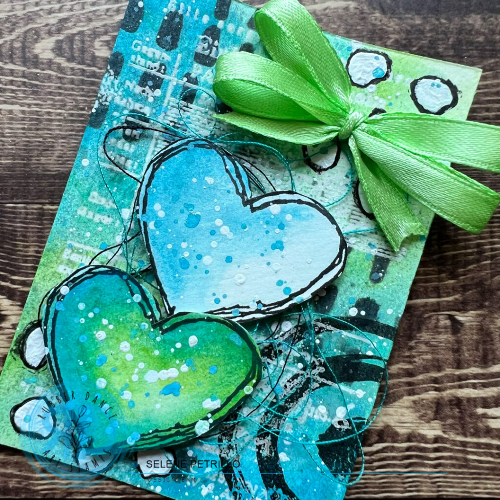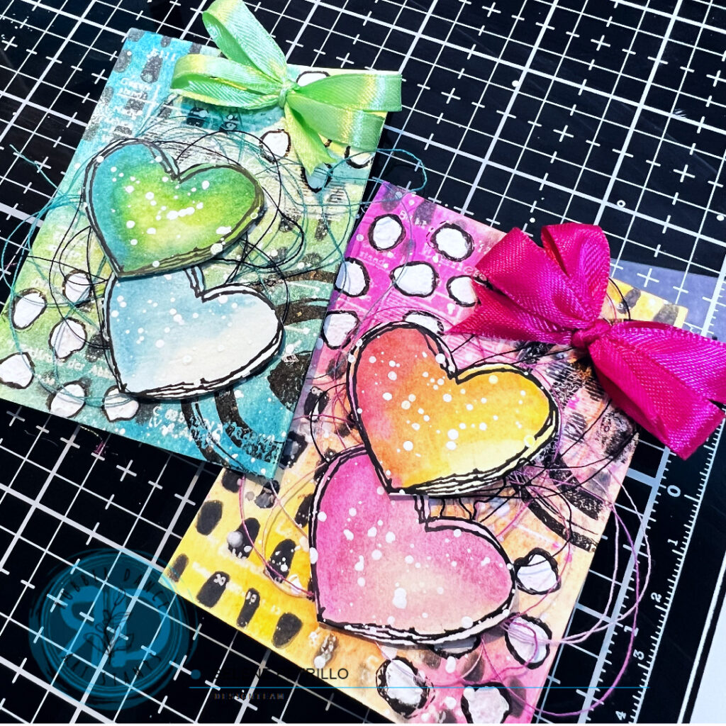 Hey, hey, hey! Selene here today with an easy ATC tutorial using Distress Crayons for the background together with the cute heart stamps from Mixed Media Marks 1.