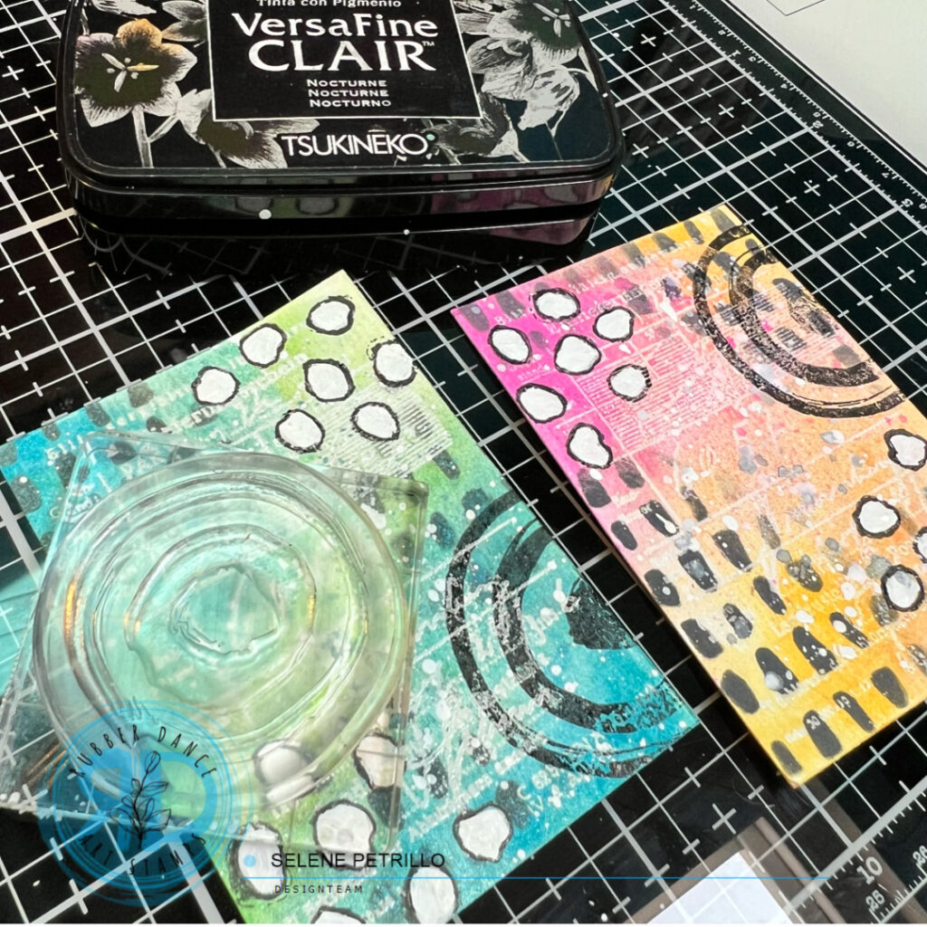 And last but not least, circles stamped in black ink and a touch of black liner around the bubbles closed the background.