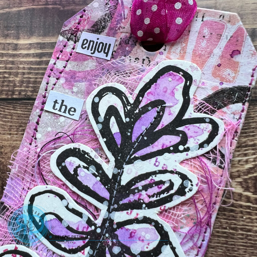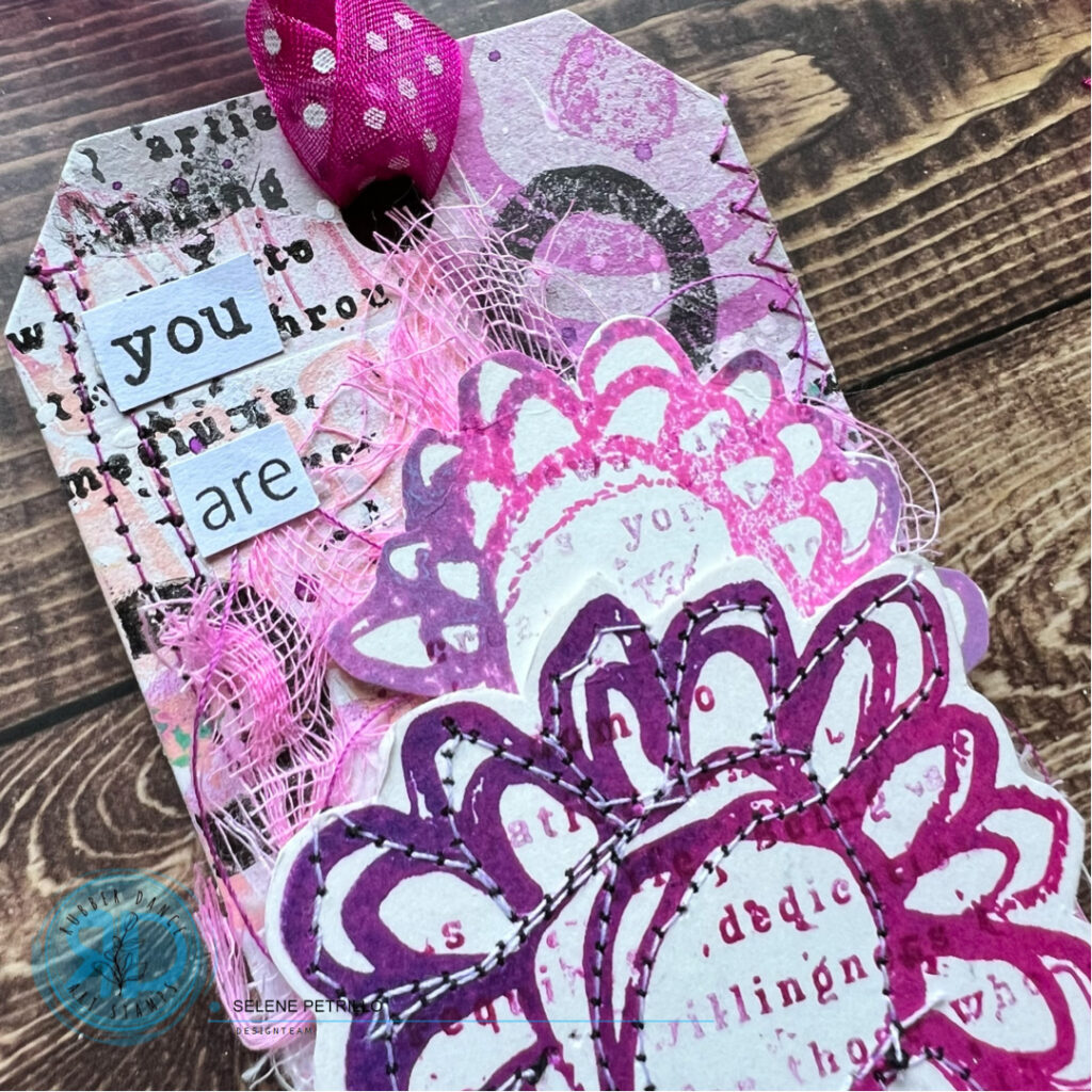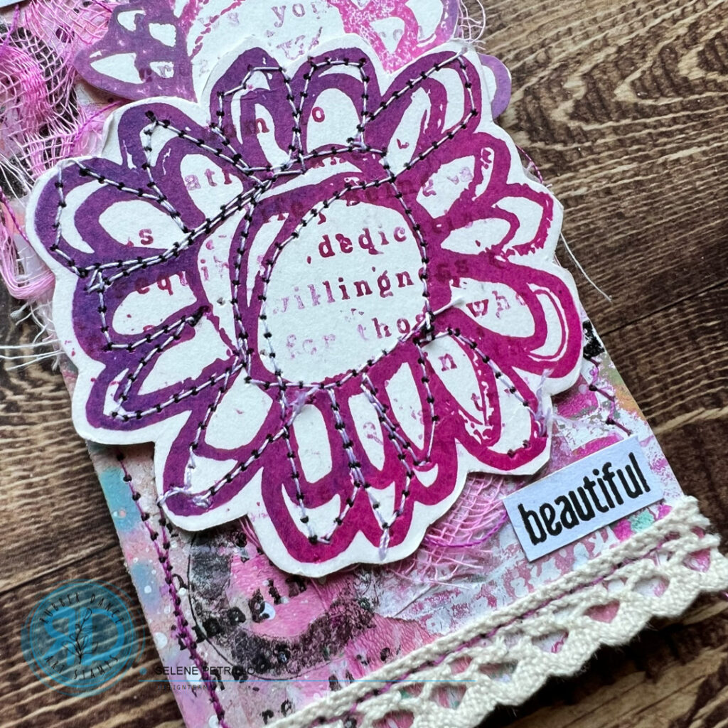 I decided to add stitches on the bigger flower – I immediately regretted the procedure 😀 but I think the result is quite good! I think the messy stitches are a good match for the sentiment: “You are beautiful”, no matter any imperfection!