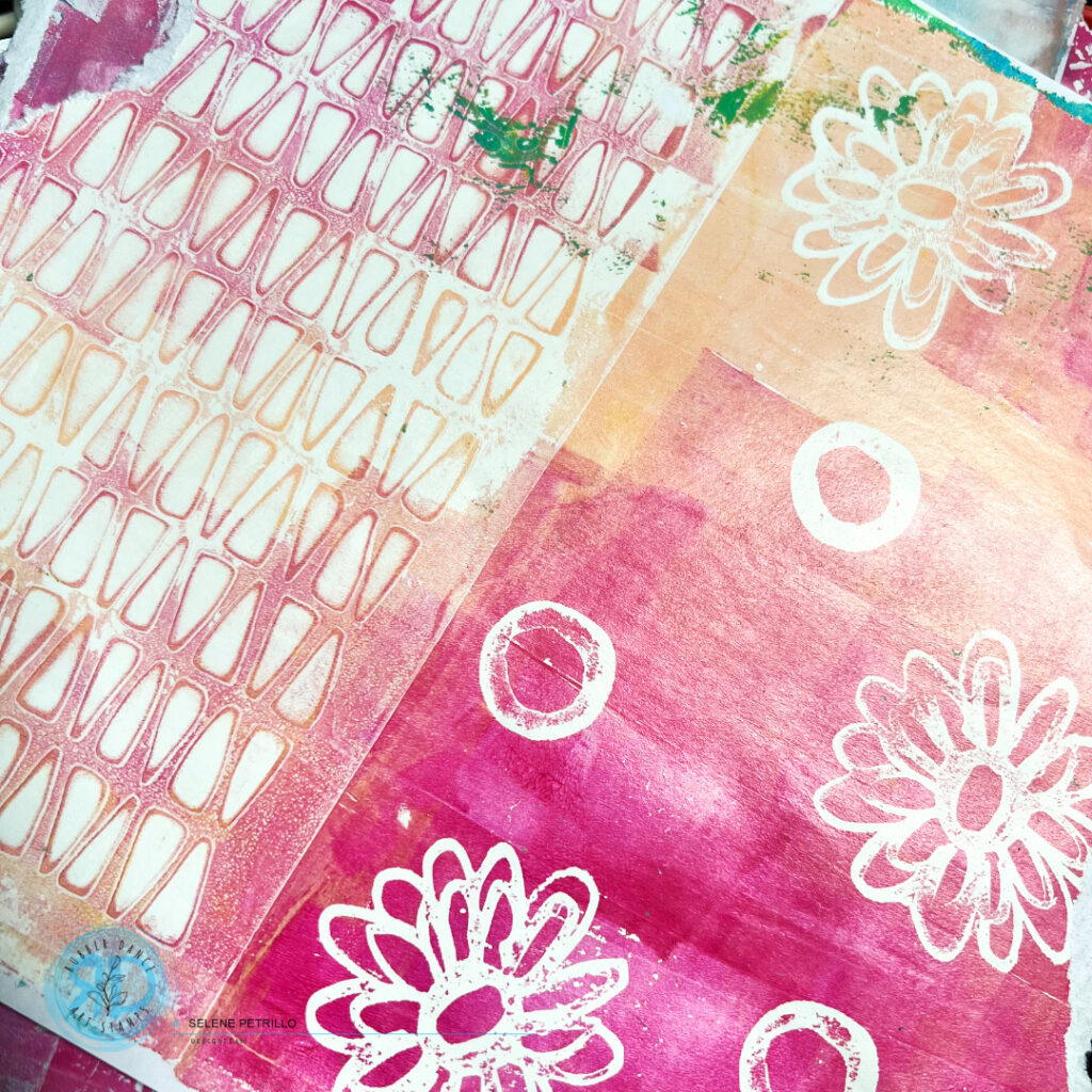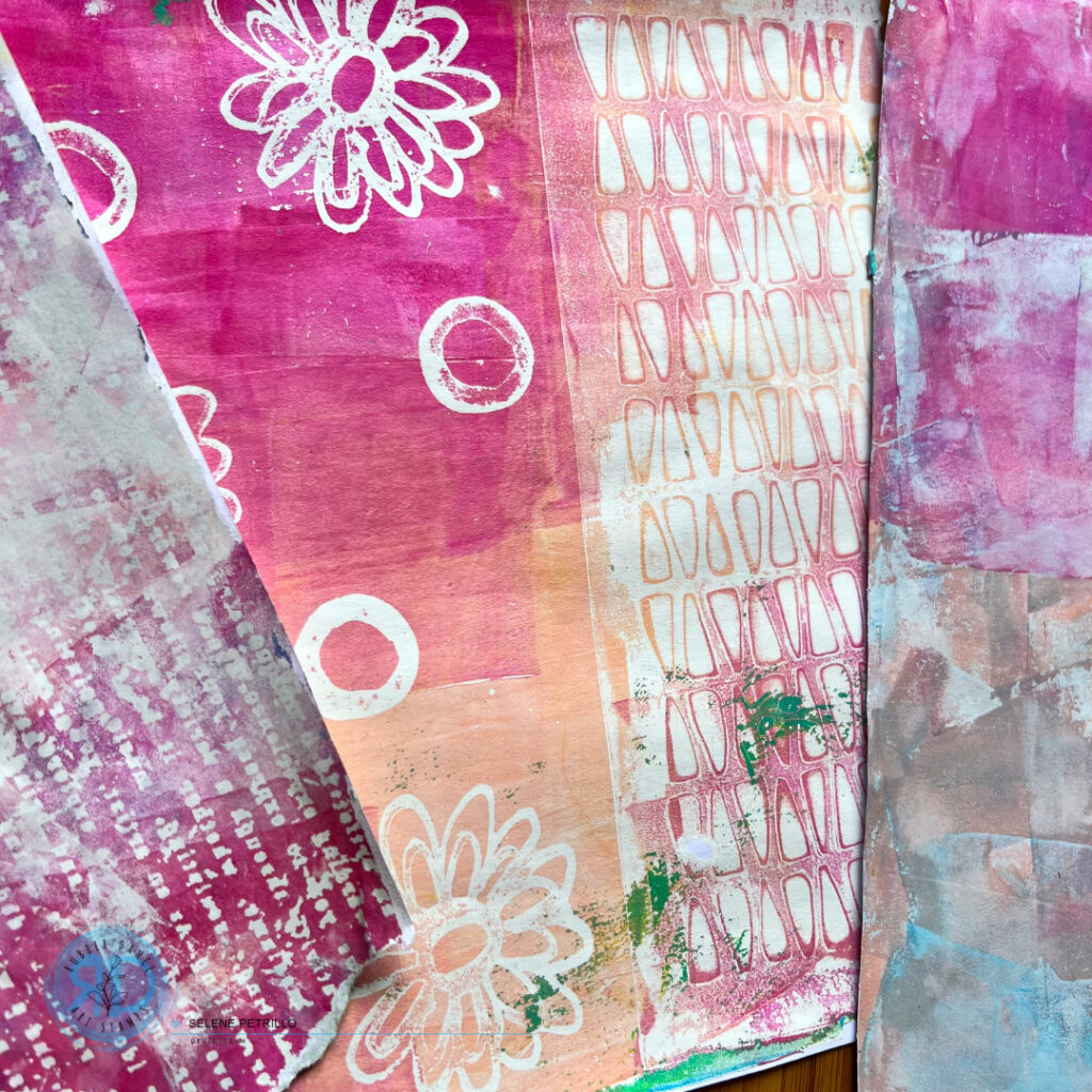 But… in this case I already had a good collection of gel press backgrounds I made on a previous session and so I decided to use them. Also because, for once, they were quite nice and not a complete mess!