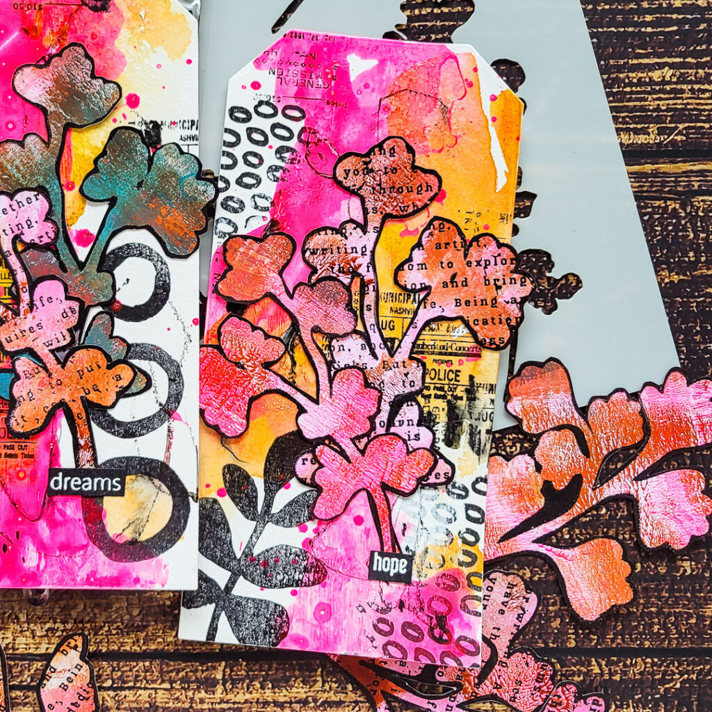 Mixed Media Tags with Acrylic Inks and Collage Fodder