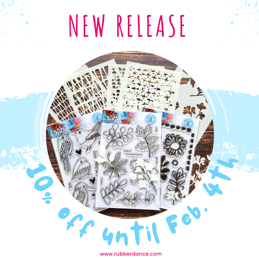 Hi there, Susanne here with two mixed media index tags using some of our brand new stamps and stencils! We have 3 new stamp sets and 5 new stencil designs which are 10% off just until tomorrow! So don’t miss this!