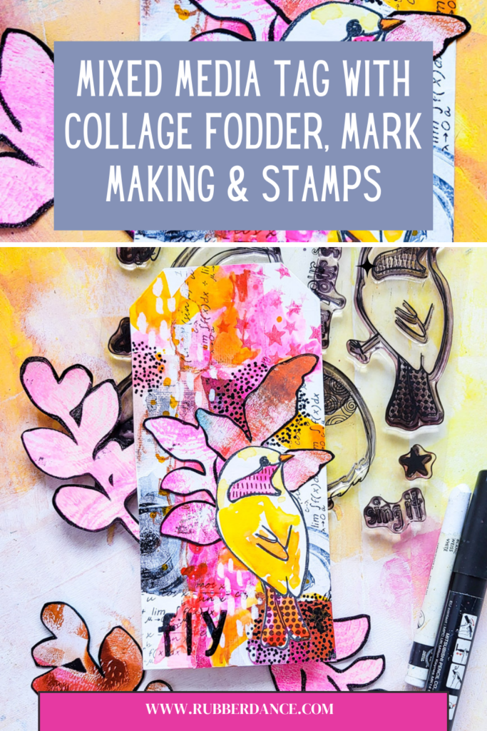 Hi there, Susanne here! I have a new mixed media tag to share today using a lot of collage fodder, acrylic inks, watercolor pencils, mark making and one of the lovely birdie from Textured Birds 2. Scroll down for a quick process video.