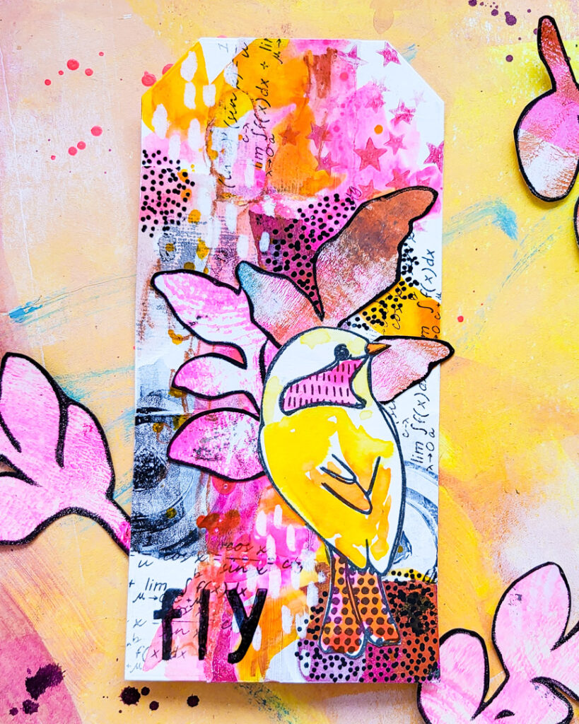 Mixed Media Tag with Collage Fodder & Textured Birds