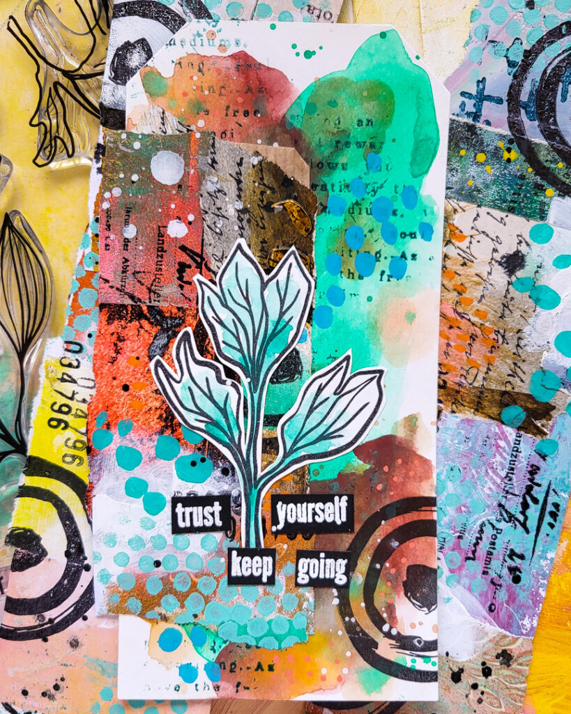 Mixed Media Tag with Neocolors and Collage Leaves 3