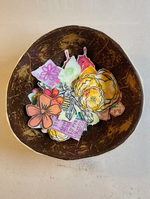 Then had a rummage in my stash of pre-prepared focal images and came up with some flowers from the Loose Florals stamp set stamped on coral-coloured gelli print offcuts.