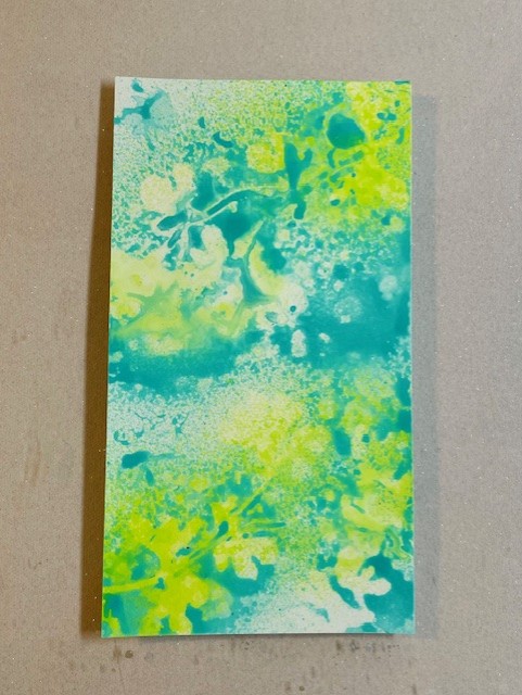 For the tag background, I used a piece of card coloured with Dina Wakley’s Media Gloss Sprays and masks from the Sketchy Leaves 4 stencil set. You can see the process in a previous blog post HERE.
