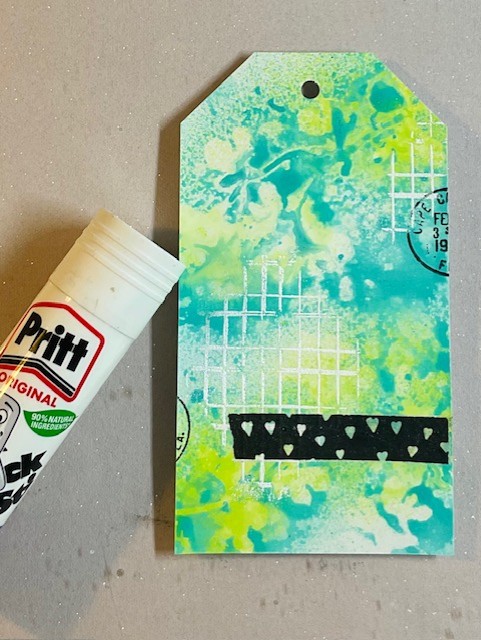 Lindsey (doodlings_cards) here with a tutorial for a mixed media tag using Dina Wakley’s Media Gloss Sprays, stencil masks and lots of collage bits and bobs.
