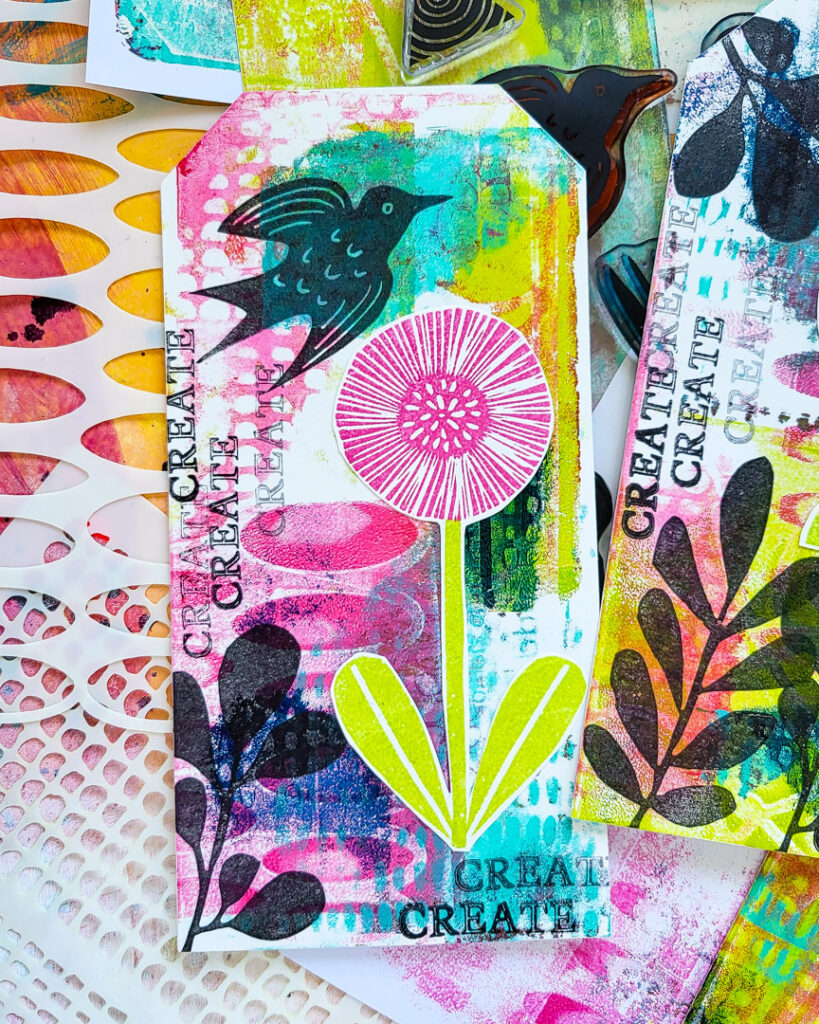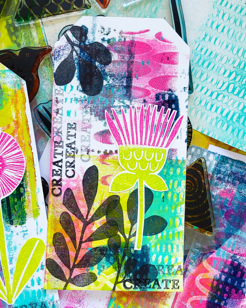 Gelli Printed Mixed Media Tags with Carved Collection 6