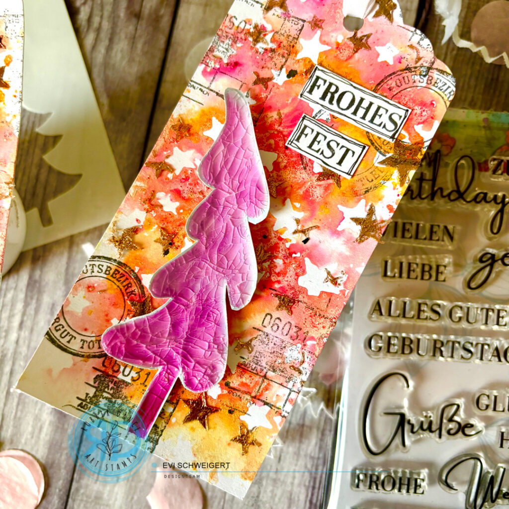 Hey there, it’s Evi on the Blog today and this time I designed two Christmas tags using the Stars and Xmas Trees 2 stencils.